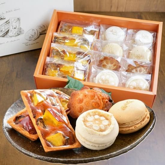 加賀野菜の五郎島金時芋、加賀蓮根、加賀味噌を使用した食物繊維豊富な焼菓子詰め合わせ。