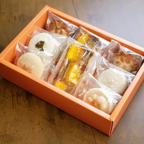 加賀野菜の五郎島金時芋、加賀蓮根、加賀味噌を使用した食物繊維豊富な焼菓子詰め合わせ。