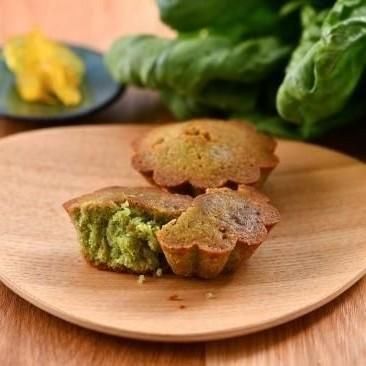 加賀野菜の「金沢春菊」と石川県産の「柚子」を使用したフィナンシェ。
